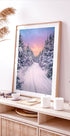 Entrez dans l'esprit de Noël avec le paysage hivernal de Christian Lindsten : une route calme et enneigée disparaît entre des pins sombres vers des montagnes lointaines, tandis que le ciel brille dans un crépuscule rose et bleu. Glace, calme et anticipation se rencontrent dans un instant poétique qui oriente le regard vers de nouveaux horizons. Parfait pour créer une magie calme de décembre dans la maison.