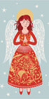Un ange aux cheveux roux éthéré de l'artiste Nic Squirrell se tient en prière silencieuse sous un ciel de minuit parsemé d'étoiles, un halo illuminé et des ailes douces déployées. Une robe cramoisie de style folklorique s'épanouit avec des motifs floraux, encadrés par le charme d'un livre de contes vintage et des étoiles scintillantes, apportant silence, espoir et émerveillement des fêtes à n'importe quel espace.