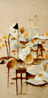 Une délicate œuvre botanique inspirée du style vintage, avec des formes florales superposées dans des tons beiges doux et dorés chauds. Avec des effets de papier découpé et des formes organiques, l'œuvre allie abstraction et beauté naturelle, idéale pour les intérieurs modernes à la recherche d'une expression intemporelle et calme.