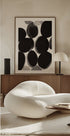 En sofistikeret, sort-hvid komposition af Janel Bragg, hvor flydende sumi-ink former møder geometriske ovaler. De bløde penselstrøg og den høje kontrast skaber rytme og ro, mens cirkulære bevægelser giver dybde. Et moderne, poetisk udtryk, der løfter alt fra stue til hjemmekontor. Minimalistisk og sanselig i sit udtryk.