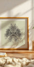 Un motif graphique de branches en miroir forme une silhouette hypnotique rappelant un test de Rorschach. Les lignes organiques créent de nouvelles figures à chaque regard et invitent à l'interprétation. Le fond épuré et clair donne de l'espace au motif et fait de l'œuvre de Nadav Jonas une déclaration forte et moderne dans la maison.