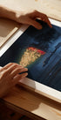 Une nuit d'hiver tranquille dans des tons bleu profond : une forêt enneigée, un lac forestier semblable à un miroir et un sapin de Noël brillant dont la lumière se reflète dans l'eau. Sur le rivage, une jeune fille se tient debout, pensive et calme. L'espoir de Noël de Terry F capture la magie, l'espoir et le calme douillet qui accompagne la lueur étoilée de Noël. Parfait pour apporter chaleur et rêverie dans l’obscurité hivernale.
