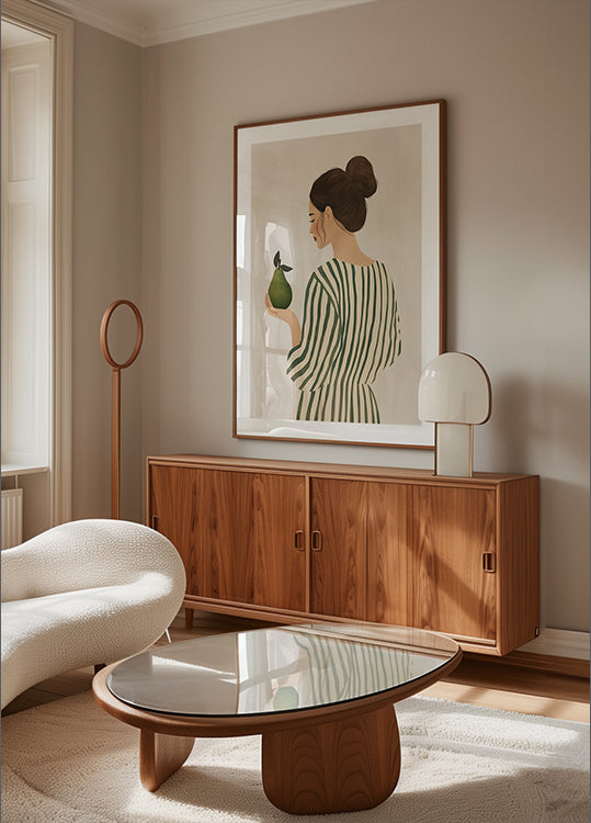 La femme et la poire d'Annika Persson - Papier de qualité supérieure avec une surface mate lisse et un toucher élégant. La finition mate réduit l'éblouissement et donne un look raffiné et intemporel. Solide et durable pour une utilisation durable, idéal aussi bien pour les environnements professionnels que pour les affichages décoratifs.