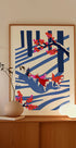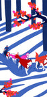 Une illustration à la gouache évocatrice de Julie Lesouef : un seau husky excité vole à travers un paysage enneigé étincelant, tandis que le traîneau trace des traces entre des sapins sombres. Le ciel brille dans des tons de bleu, de rose et d’orange, et le froid frémit dans l’air. Un conte hivernal plein de vitesse, d'aventure et de poésie nordique. Parfait pour les rêves d'hiver.