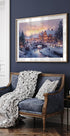 Une ville de Noël pleine d'ambiance se déroule dans une neige douce, où de fins flocons de neige tombent sur des maisons douillettes et des pins. Les gens se déplacent entre les fenêtres lumineuses et les rues sombres, tandis que les coups de pinceau confèrent au sujet un charme pittoresque et intemporel. Parfait pour capturer la chaleur dans l’éblouissement froid de l’hiver. Accrochez-le dans le salon pour une ambiance de Noël cosy.