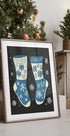 Des lettres bleues audacieuses apparaissent sur un fond noir profond, épelant des mots hivernaux ludiques comme « Chaussettes » et « Maille » dans une mise en page nostalgique et rétro. Net, graphique et discret, il évoque les nuits glaciales, les souvenirs de jours de neige et les ambiances chaleureuses de la saison, parfait pour apporter une ambiance de vacances fraîche aux espaces modernes.