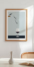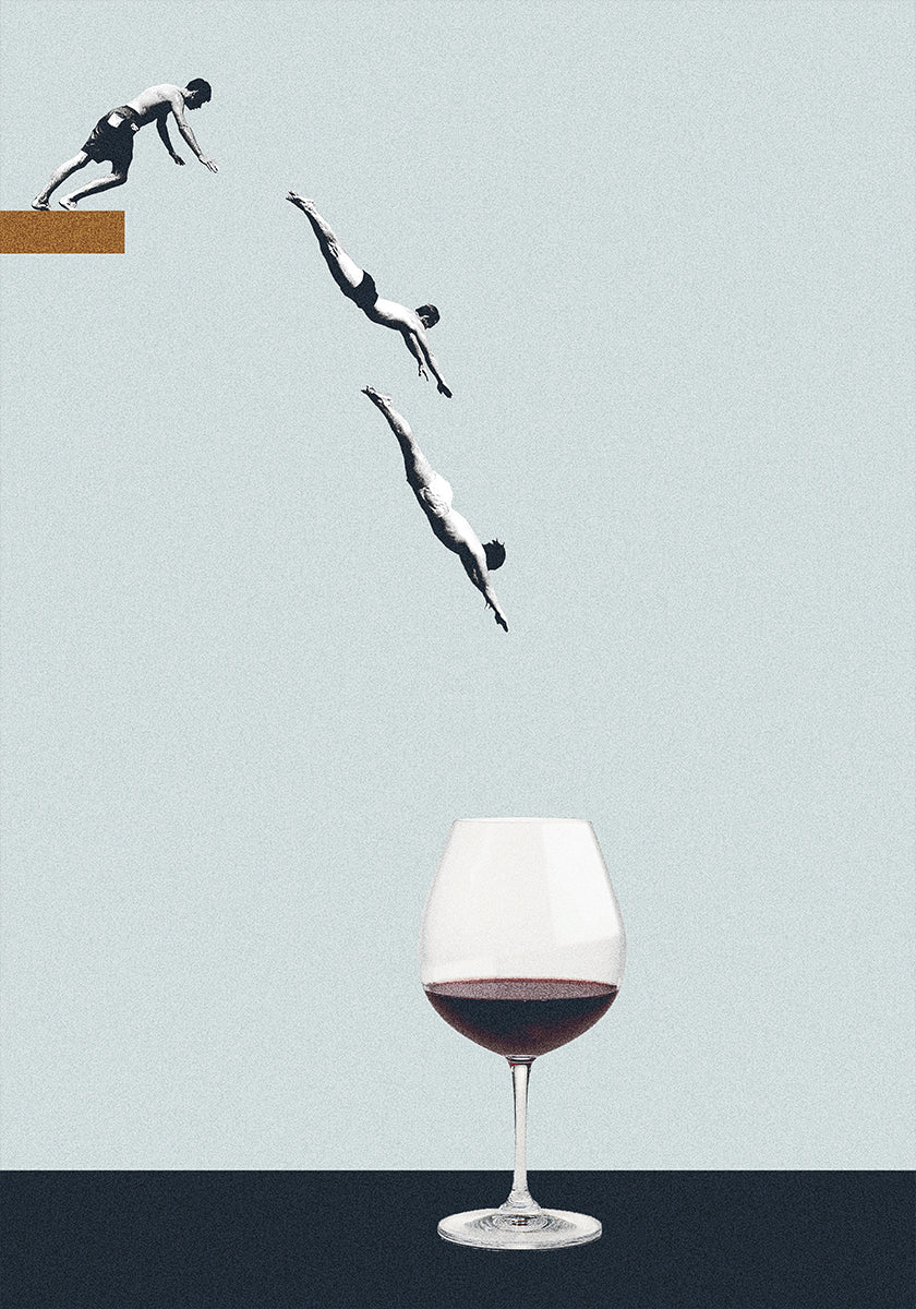 Une impression d’art pleine d’esprit et minimaliste qui montre une plongée parfaite – directement dans un verre de vin rouge. Avec son concept ludique et sa composition épurée, cette pièce s'intègre parfaitement dans les cuisines, les salles à manger ou tout espace qui embrasse l'humour avec une touche de sophistication. Un sujet de conversation amusant pour les amateurs de vin et les passionnés de design.