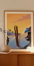 Ski Trip de Nicholas capture le calme avant la course du soir : les silhouettes des montagnes enneigées se reflètent dans un lac tranquille, tandis que les pistes de ski et les bâtons dressés suggèrent l'aventure. Le dégradé du ciel, allant de l'orange chaud au violet foncé, projette une lueur de rêve sur le paysage et invite à l'évasion hivernale. Parfait pour les rêveurs, les envies de voyager et les âmes alpines.