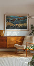 Une vue aérienne à couper le souffle du paysage désertique californien, montrant les ruisseaux artistiques et les deltas de la nature au-dessus des dunes de sable. Les motifs complexes en forme de veines en bleu et or créent un chef-d'œuvre abstrait, où la terre et l'eau s'unissent en harmonie. Une œuvre d’art mural photographique saisissante pour les intérieurs modernes.