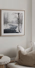Winter's vibe af Haim Rosenfeld indfanger Laplands stille vintermagi: en frossen skov ved spejlblankt vand, hvor snedækkede træer og sarte blå toner smelter sammen i harmonisk ro. Et øjeblik af kulde og klarhed, hvor naturens stilhed, frost og let tåge skaber en dyb følelse af fred. Perfekt til at skabe ro i stuen eller kontoret.