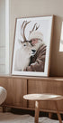Winter Companions af Treechild indfanger et stille øjeblik i vinterlandskabet: en rolig figur står tæt ved en majestætisk hjort med brede gevirer, mens snefnug og diset ånde svæver i den klare luft. Bløde toner, frostet lys og nærvær skaber en fredfyldt juleatmosfære og tidløs harmoni. En stille hyldest til vinterens magi.