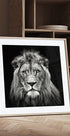Un portrait dramatique en noir et blanc d'un jeune lion mâle, capturé dans un éclairage discret avec un regard intense et une crinière majestueuse. Christian Meermann capture la force et la vulnérabilité de l'animal dans un gros plan intemporel, où la texture de la fourrure et des ombres crée calme, profondeur et élégance moderne et minimaliste. Parfait pour attirer l'attention dans le salon, le bureau ou la galerie.
